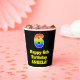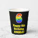 This exciting and fun birthday-themed paper cup design features a large number “6” with a rainbow spectrum gradient inspired pattern, along with the message “Happy 6th Birthday,”, and an editable name. The background is coloured black. Vibrant, colourful paper cups like this might be fun to have at a birthday celebration/party being held in celebration of somebody’s 6th birthday. [~Z0000537]