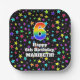 6th Birthday: Fun Stars Pattern and Rainbow “6” Paper Plate