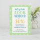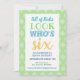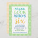 Beautiful blue green yellow blue, pastel tones, pleasent and complimentary colours. Great design for birthday invitation and clever 6th birthday wording.