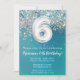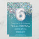 6th Birthday Invitation Teal and Silver Glitter 6th birthday party invitation for a 6 year old with modern script writing and fun foil balloons.