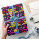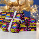 This colourful and joyful birthday-themed wrapping paper design features a large number “6” with a rainbow spectrum gradient inspired pattern, along with the message “Happy 6th Birthday,”, and a custom name. The background features a pattern of heart shapes with colours like pink, purple, and red. Personalised birthday themed wrapping paper like this might be a fun way to wrap a gift or present being given to somebody who is celebrating their 6th birthday. [~Z0000549]