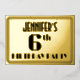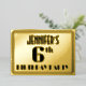 The front of this stylish sixth birthday party foil invitation card design features a custom name, an art deco look inspired number “6th”, the message “BIRTHDAY PARTY”, and a border pattern consisting of lines. The back features personalised details about the event, such as the date, time, venue/place, and any other information that may be relevant. Luxurious, elegant, personalised invitations like these might be used to invite attendees/guests to a birthday gathering/party being held in celebration of somebody’s 6th birthday. [~Z0000606]
