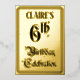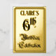 The front of this ornate sixth birthday celebration/party foil announcement/invitation design features the message “6th Birthday Celebration” in elegant script-style text. It also features a customisable name. The back features personalised details about the event, such as the date, time, place/venue, and any other information that may be relevant. Elegant, opulent, customisable invitations like these might be used to invite guests to a birthday celebration/party being held to honour somebody’s 6th birthday. [~Z0000596]