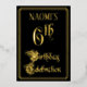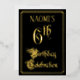 The front of this luxurious, ornate, foil sixth birthday celebration/party invitation design features the message “6th Birthday Celebration” in opulent script-style text. It also has a customisable name. The background of the front is coloured black by default (although it can be customised to a different colour). The back features personalised details about the event, such as the date, time, location, and any other information that may be relevant. Elegant, fancy, customised invitations like these might be used to invite guests to a birthday party/celebration being held to honour somebody’s sixth birthday. [~Z0000589]
