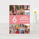 6th Birthday Photo Collage 13 Photos Pink & White Card