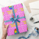 This upbeat and festive 6th birthday-themed wrapping paper design features a large number "6" having a colourful pattern inspired by the look of a rainbow spectrum. It also features the message "Happy 6th Birthday,", and a personalised name. The background features a pattern of dark pink and light pink stripes containing loving pink heart shapes. Birthday themed wrapping paper like this might be a fun way to wrap a gift or present being given to celebrate somebody’s sixth birthday. [~Z0000415]
