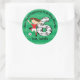 A cute soccer design for the 6th Birthday of a future soccer player or soccer fan, featuring a large number 6 with soccer balls and the word "goal" written inside it. A young soccer girl in a red and white soccer uniform stands next to the number. Curved around the top of the sticker is the text, "Thank you for celebrating my Birthday with me". Customise the text at the bottom of the stickers for a great personalised party favour. Other numbers and team colours available.