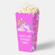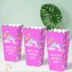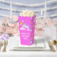 This adorable unicorn-themed 6th birthday popcorn favour box features a fun design with colourful balloons, soft clouds, and joyful rainbows—perfect for party guests to enjoy their popcorn with a touch of magic!