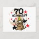 Humourous 70th birthday T-shirts, birthday buttons, cards, mugs, stickers, and other 70th birthday apparel and gift items featuring a silly cat in a party hat and text that asks "70 Already?".