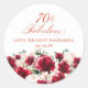 Add a special touch to your birthday party with this elegant round 70 & Fabulous birthday sticker. It features a watercolor red rose and pink peony floral border along the bottom. Dark green leaves give it a rustic botanical vibe. Fabulous is written in a beautiful classic script. Add a personal touch with the birthday celebrant's name and birthday below. This item is part of the Red Rose Pink Peony collection. It contains professionally designed invitation templates, custom welcome signs and party supplies.