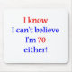 I know, I can't believe I'm 70 either! Humourous design for the 70 year old who knows they don't look 70. Makes a great 70th birthday gift.