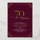 This beautiful invitation features hand lettered calligraphy artfully presenting 'seventy' in luxurious hand lettering against a burgundy background, adorned with delicate swirls in the corners top and bottom in real gold foil, along with the name and the number 70. This image will have all your guests excitedly anticipating your fabulous seventieth festivities!