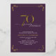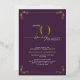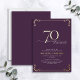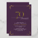 This beautiful invitation features hand lettered calligraphy artfully presenting 'seventy' in luxurious hand lettering against a purple background, adorned with delicate swirls in the corners top and bottom in real gold foil, along with the name and the number 70. This image will have all your guests excitedly anticipating your fabulous seventieth festivities!