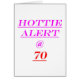 If you know an 70 year old hottie who knows they're hot, this may just be the perfect 70th birthday card. Send out a "Hottie Alert" on this 70th year old and she\he will love you for it. Makes a great 70th birthday gift.