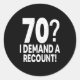 70 I Demand A Recount Seventy Years Old 70th Birth Classic Round Sticker