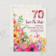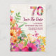 Announce your milestone celebration in style with this elegant 70th birthday save the date card. Featuring a soft linen background with a vibrant floral “70,” this customisable design is perfect for sharing the details of your special day with family and friends. Enjoy!