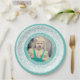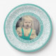 70 Your Photo Random Number Pattern Teal/White Paper Plate