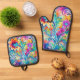 70s 60s Psychedelic Hippy Retro Hip Oven Mitt & Pot Holder Set