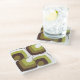 70s Bold Modern Retro Ogee Motif in Greens Glass Coaster