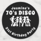 Fun snazzy 70's Disco themed birthday party confetti in black, silver and white. People dancing with a cool silver glitter ball background. All text can be personalised for example "birthday party", "happy birthday", name and age etc.
