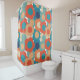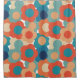 This shower curtain has a 1970s design of flowers in shades of orange, blue, and cream.