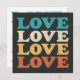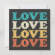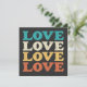 70s style LOVE typography in a distressed repeat design in retro colours. Black added to the front background, but can be altered to white or your choice of colour. Design added with a transparent back to the back.
