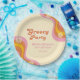 70s Retro Groovy Party Daisies Peach Birthday Paper Plate