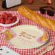 Retro birthday napkin featuring a retro wave corner and cute daisy flowers.