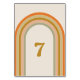 This retro wedding table number design was inspired by the 70s retro trend. It features a rainbow in retro colours. This design is perfect for a retro, boho, disco, or 70s style wedding.