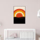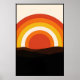 Transform your space with this stunning 70s poster that captures the essence of retro vibes! Featuring a bold graphic landscape, this artwork showcases a giant, stylised setting sun in vibrant concentric stripes of burnt orange, mustard yellow, and deep brown. The minimalist dark rolling hills in the foreground add depth, while the subtle paper texture brings a warm, nostalgic charm to your decor. Perfect for adding a touch of vintage flair to any room, this poster is a must-have for lovers' of 70s aesthetics!