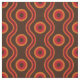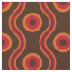 Geometric ring/ wave pattern fabric inspired from the 60s-70s with vintage colour scheme in brown, orange and red.