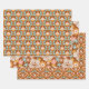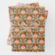 This gift wrap design features three retro prints. Colours include orange, brown, pink and blue.