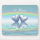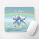 Mousepad with my artwork of two platinum hearts floating on the water under a rainbow. Customisable text says "70 Years".
