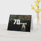 Fun confetti with white text and champagne flute toast for 70th anniversary on black.