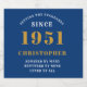 A personalised classic label design for that birthday celebration for a special person born in 1951 and turning 70. Add the name to this vintage retro style blue, white and gold design for a custom 70th birthday gift. Easily edit the name and year with the template provided. A wonderful custom birthday gift. More gifts and party supplies for that 70th party celebration available in the store.