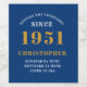 A personalised classic label design for that birthday celebration for a special person born in 1951 and turning 70. Add the name to this vintage retro style blue, white and gold design for a custom 70th birthday gift. Easily edit the name and year with the template provided. A wonderful custom birthday gift. More gifts and party supplies for that 70th party celebration available in the store.