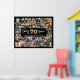 70th Birthday 92 Photos Black Gold Cheers To Years Poster. Create a 70th birthday photo memory display printed on a poster print utilising this easy-to-upload photo collage template with 92 pictures in various sizes to accommodate pictures of her or him through the years for a fun birthday sign or party decoration and commemorative keepsake. The design features the title CHEERS TO 70 YEARS with gold foil balloon numbers and your custom text (the sample says HAPPY BIRTHDAY NAME) in your choice of text of font styles and colours as well as background colour (shown in black). OPTIONS: The sample is shown in a 36x29" size on Value Paper (Matte); other standard and custom print sizes, paper quality and framing, Instant Digital Download file for printing locally or transferring the design to a foam board, banner, canvas or other product options are available on the ordering page. RESIZING TIP: Choose Custom Size for even borders by changing the height and width proportionately AFTER clicking the UNLOCK icon (looks like a chain link). ASSISTANCE: For help with design modification or personalisation, colour change, resizing or transferring the design, contact the designer BEFORE ORDERING via the Zazzle Chat MESSAGE tab or email makeitaboutyoustore@gmail.com.