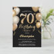 70th Birthday Black and Gold Balloons Confetti Invitation