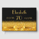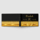 Elegant, classic, glamourous and feminine. A gold coloured ribbon with a bow with golden glitter and sparkle, a bit of bling and luxury. A guestbook for a 70th birthday party. Black background. Templates for name, age, date of birth and anniversary date. Spine: add name and date.