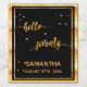 Elegant and modern for a 70th birthday party. Black backdrop and faux gold text written with a trendy hand-lettered style script: hello seventy. With golden dots as decor. Templates for name and date, golden letters. You can change the background colour to match your theme. Click customise and then "select a background colour" on your right.
