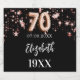 A classic black background decorated with rose gold stars. Personalise and add a date, name and year of birth. Age number written with a balloon style font.