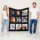 70th birthday black silver photo collage name fleece blanket