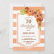 70th Birthday Dinner Apricot Striped Floral Party Invitation