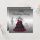 Womens' glamourous black, silver and hot pink 70th / seventieth/ seventy years old birthday party celebration invitations with woman's silver printed image rhinestones jewels high heels stiletto shoes images with sparkles, a beautiful ornate hot pink and black girly diva cake with funky silver disco retro mirror ball / glitter ball, flowers, bling diamonds and chic corset tie and pretty printed silver rhinestones glitter musical note on a sophisticated silver gradient background. These elegant funky, stylish, fashion invites for her are decorated both sides. Trendy, cool and classy modern fashionable glamour invites perfect for a dinner and dancing event. PLEASE NOTE: All products on Zazzle have flat printed images - not real jewels or sparkles. If you need assistance customising your product please contact me through my store and I will be happy to help.