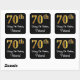 This sophisticated, elegant, and luxurious birthday-themed square sticker design features a large ordinal number “70th” having an imitation/faux gold-like gradient pattern, plus the birthday greeting message “Happy 70th Birthday,” and a custom name in a script-style font. The background is coloured black. Luxurious stickers like this might be used when wrapping a birthday present or gift being given to somebody who is celebrating their seventieth birthday, or perhaps might be given out to the attendees at a birthday celebration or party. [~Z0000517]