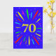 An explosive 70th birthday card! What a wonderful way to send birthday greetings. The number 70 in bright yellow with an explosion of bright colours and stars.