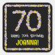 This floral, nature-inspired birthday square sticker design features the message “Happy 70th Birthday,” along with an editable recipient name. The large number “70” plus the border consist of flower icons. Stickers like these might be given out or used at a party held for somebody who is celebrating their seventieth birthday, or perhaps used when preparing invitations or wrapping presents/gifts for such an event. [~Z0000652]