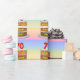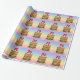 This fun and colourful birthday themed wrapping paper design features a cartoon-style depiction of a three-tier birthday cake having numeral-shaped candles on top showing the number “70“, along with the message “HAPPY 70TH BIRTHDAY,”, and a custom recipient name. The background features a multi-colour pastel rainbow spectrum inspired gradient pattern. Wrapping paper like this might be a fun way of wrapping a birthday present or gift being given to somebody who is celebrating their 70th birthday. [~Z0000622]