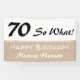 70th Birthday Funny saying party Banner. Funny and inspirational 70 so what saying in a modern black script. The banner is in beige and black colours. Change the name and any text on the banner. Great for a woman or man with a sense of humour.