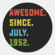 70th Birthday Gift Awesome Since July 1952 70 Classic Round Sticker